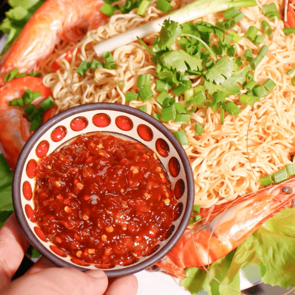 - Hương vị: Sản phẩm sở hữu màu đỏ thẫm của ớt chín rim kỹ rất bắt mắt. Lớp dầu sóng sánh hòa quyện cùng hương thơm nồng nàn quyến rũ từ tỏi phi. Vị cay xè bùng nổ ngay đầu lưỡi kích thích vị giác của bạn tối đa. Vị cay được cân bằng bởi hậu vị ngọt thanh và chút mặn nhẹ.
