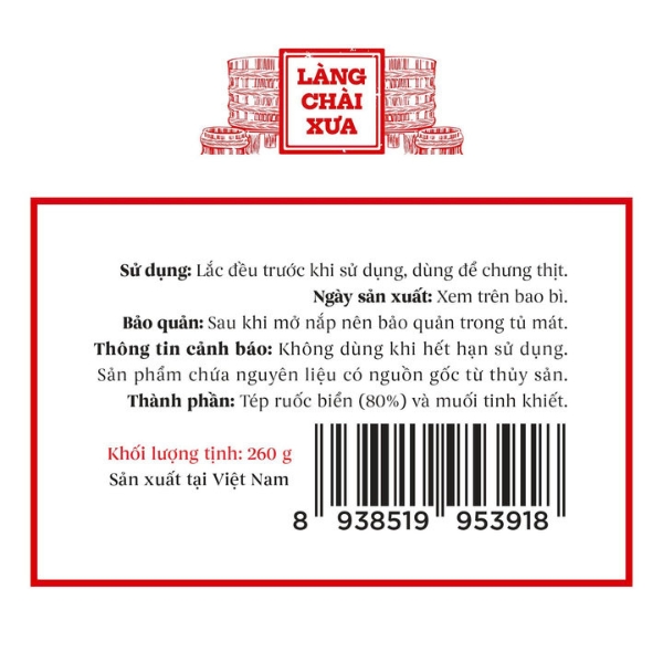 - Nguyên liệu: Thành phần chính là tép tươi vỏ mỏng, kích thước đồng đều. Tép được trộn cùng muối biển tinh khiết và thính gạo rang thơm. Sơ chế diễn ra ngay sau khi đánh bắt để đảm bảo độ ngọt. Việc này giúp ngăn chặn hiệu quả sự xâm nhập của vi khuẩn có hại.