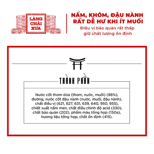 - Nguyên liệu: Thành phần chủ đạo là nấm Shiitake tươi được tuyển chọn kỹ. Nấm kết hợp cùng muối biển tinh khiết và nước cốt đậu nành lên men. Nấm Shiitake được biết đến với hàm lượng dưỡng chất vô cùng cao. Nấm chứa chất chống oxy hóa, mang lại nguồn nguyên liệu 100% thuần chay.