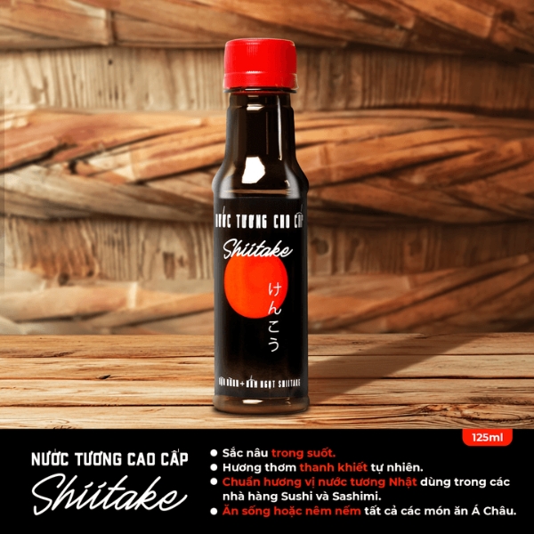 Nước tương Shiitake xác lập các thuộc tính thực thể độc bản. Sản phẩm định vị rõ ràng phân khúc gia vị hữu cơ và thực phẩm chức năng:
