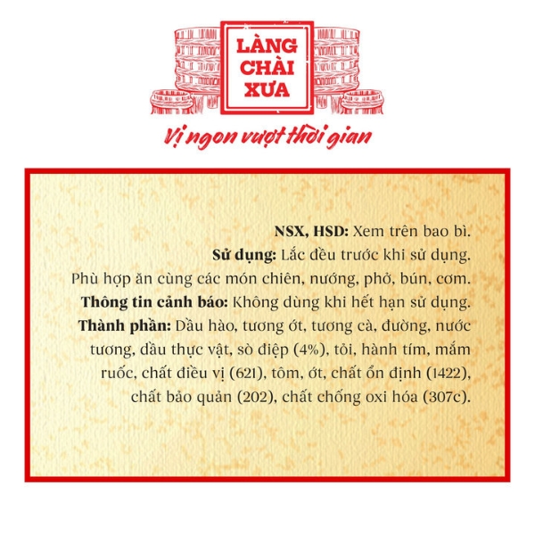 - Hương vị: Sản phẩm sở hữu màu đỏ cam tự nhiên, sóng sánh và vô cùng bắt mắt. Hương thơm nồng nàn từ hải sản hòa quyện cùng mùi tỏi phi vàng ươm. Vị cay đặc trưng được cân bằng bởi hậu vị ngọt đậm đà từ thịt sò điệp. Sự kết hợp này tạo nên một tầng vị sâu lắng và tinh tế trên đầu lưỡi.